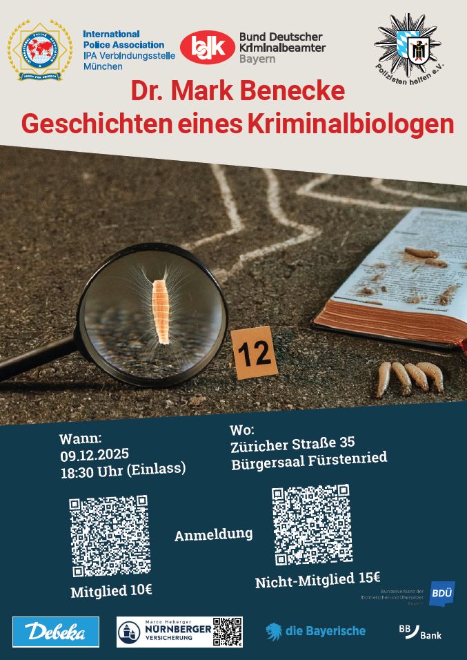 Erleben Sie Kriminalfälle hautnah: Bei der Talkrunde ‘Vom Tatort zum Urteil’ berichten Münchner Ermittler, Rechtsmediziner und Staatsanwalt von ihren Einsätzen – spannend & fundiert.